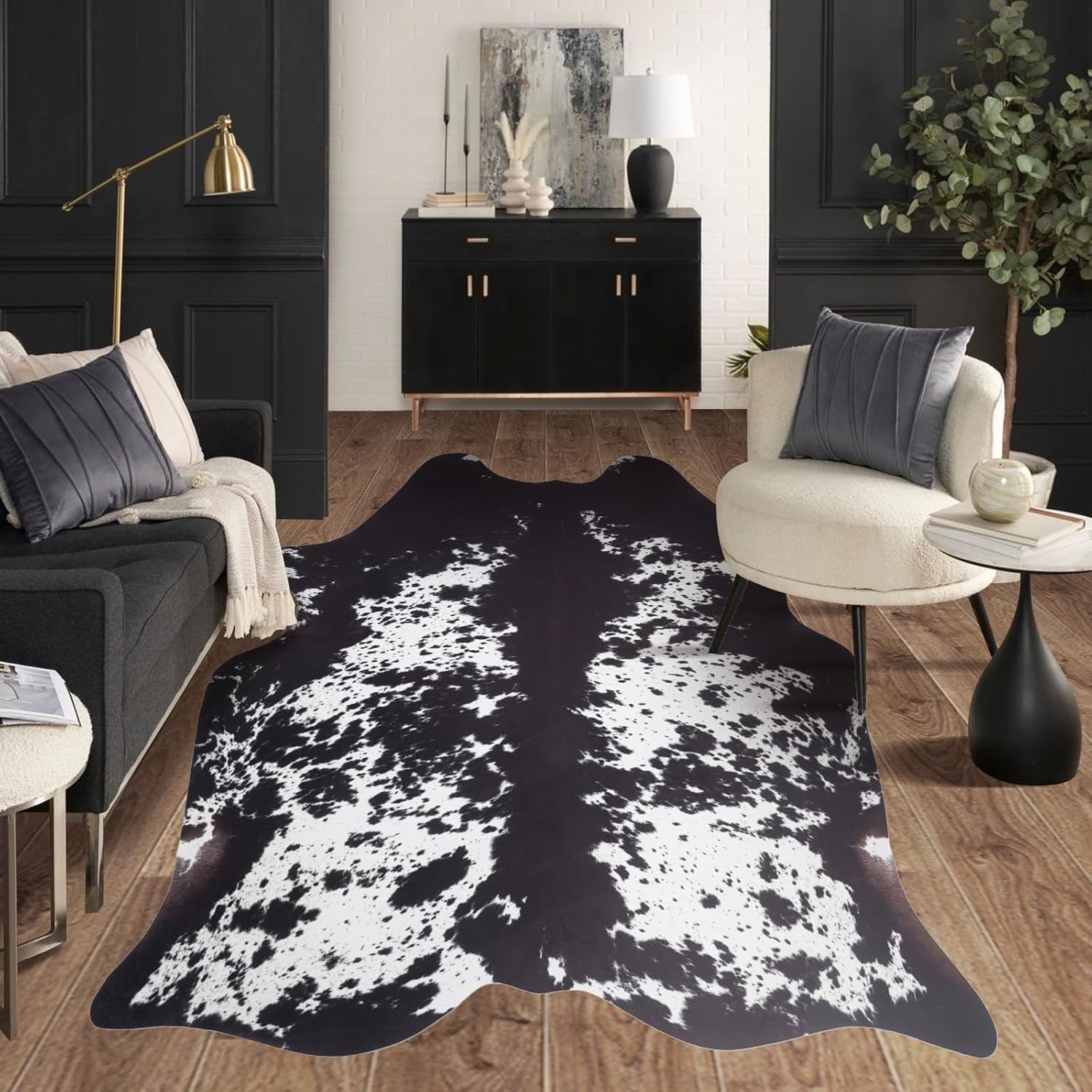 - 【Easy to Clean】The cow print rug can be easily cleaned by vacuuming to remove dust and dirt from its surface. For stains, simply use a mild detergent and a damp cloth to wipe them away.