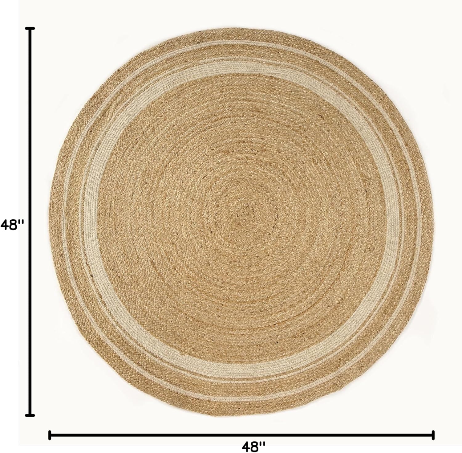 - ROUND JUTE AREA RUG- These 4 ft (4x4ft) Natural Round Area Rugs are handcrafted by artisan rug makers from 100% natural premium Jute & Cotton that is elegant and feels soft on bare feet. With its 0.2cm thickness and round design, this rug is a perfect way to add balance to a room or incorporate a softer element into an interior design. Embracing the warm, natural colors of jute this rug is very versatile and will suit a variety of home styles.